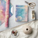 Vintage dandelion abstract pattern wrapping paper featuring delicate seed heads layered over rich teal, pink, and muted purple watercolor textures. Dreamy and artistic with an ethereal mixed-media aesthetic, this seamless design is ideal for botanical art lovers, boho style fans, nature enthusiasts, and vintage-inspired decor admirers.