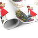 O Natal como parecia na década de 1950 com esta trabalho de arte retrô de uma senhora vestida com um vestido de cheio em vermelho.