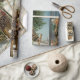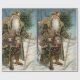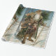 Papel de envolvimento encantador do vintage que caracteriza Papai Noel que anda através da neve.