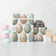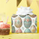 "Um encantador padrão sem descontinuidades que apresenta ovos de páscoa ao estilo de vintage em tons de pasta suave de rosa, azul, amarelo e verde. Cada ovo é adornado com padrões florais complexos, designs de renda delicadas e detalhes sutis de ouro. Os ovos ficam em pé, espaçados uniformemente sem tocar, e são totalmente visíveis num fundo branco limpo. Perfeito para papel de embalagem elegante e festivo, papelaria ou decorações sazonais."