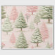 Um belo padrão de natais vintages de aquarela é tons de rosa e verde. Trendy cor-de-rosa papel de embrulho de presente de Natal sem costura. Embalagem de presente de árvore de Natal rosa pastel.