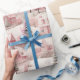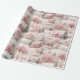 Lindos padrões de natais vintages de aquarela em tons de rosa e verde. Papel de embrulho de presente de Natal cor-de-rosa.