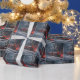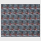 Comboio vermelho antigo com locomotiva a vapor numa tempestade de neve
