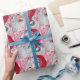 Vintage e adoráveis Papais noeis de Natal embrulhando papel com fundo vermelho e rosa.