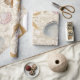 Colagem de diferentes conchas aromáticas de cor neutra vindima com estrelas-do-mar num padrão floral arenoso.