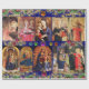 Design de Natal elegante, clássico, brilhante e alegre com pedras roxas de ametista roxa de fuchsia 3D brilhantes .Obras-primas medievais italianas tardias de Fra Beato Angélico , Florença -Itália Design gráfico e elaboração digital por parte do Búlgaro Lumini (c) .