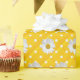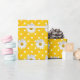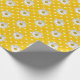 Padrão de margarida branca em bolinhas brancas com fundo amarelo.