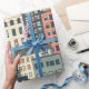 Este papel de embrulho moderno apresenta uma visão da cidade. Pode ser usado para qualquer ocasião! Aproveite o seu novo Papel de moldagem do modo City View!
