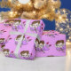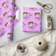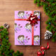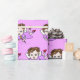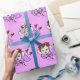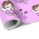 Um lindo papel de presente com uma fada desenhada à mão em estilo folclórico caprichoso com um vestido roxo para o aniversário de uma menina.