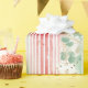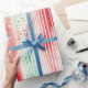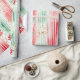 A bright red and green watercolor striped pattern sprinkled with jolly seasonal poinsettia flowers.