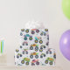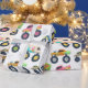 A fun and playful seamless pattern featuring colorful monster trucks with bold tires, dripping paint details, and cute cartoon style. Perfect for kids