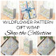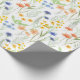 This gift wrapping paper features a watercolor wildflower pattern in shades of green, yellow, orange, and blue.