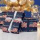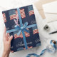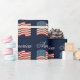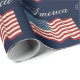Ondas, bandeiras americanas rústicas decoram este papel de embrulho de na moda. O design é da arte original.