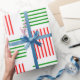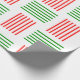 Este papel de embrulho de Natal tem uma design moderna do século médio que se parece com uma tecelagem com linhas vermelhas e verdes num campo de branco.