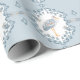 Este papel de embrulho apresenta uma tempestade de cinza cercada por um quadro azul de arte popular escandinava sobre um fundo azul claro. A cegonha tem um design de arte popular embelezado em sua asa em marinho, cinza, vermelho e laranja.