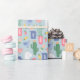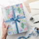 Blue Whimsical Llama e Rainbow Gift Wrap - esse papel de embrulho caprichoso é coberto por lhamas e cactos. É perfeito para embrulhar presentes de aniversário ou presentes de chá de fraldas.