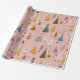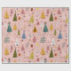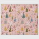 The gentle pink background brings a modern pastel twist to classic holiday wrapping, while the playful tree illustrations offer a cozy, retro-inspired charm. Perfect for design lovers and those who adore a cute, Scandinavian-style Christmas aesthetic.