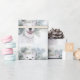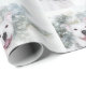 Terrier branco feliz e sorrindo do pitbull com os ramo do Natal no papel de envolvimento do feriado do Natal dos amantes do cão do fundo