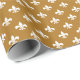 Papel de enrolamento com um padrão branco de flur-de-lis num fundo de ouro foscado. Personalizável. Moderno, moderno e elegante, é um clássico sofisticado que é perfeito para qualquer ocasião.