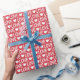 Um papel de embrulho construído com um padrão de amor em branco. Personalize o fundo vermelho de uma forma fácil.