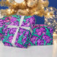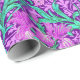 Papel embrulhado num William Morris, Art Nouveau, impressão de feridas e folhas, melhorado digitalmente e colorido, em orquídea macia e turquesa, sobre fundo ametista roxo