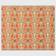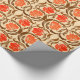 Papel de enrolamento numa vintagem William Morris padrão têxtil de flores e folhas estilizadas de pâncreas - flores num gradiente de laranja mandarina média a profunda, acentuado com marrom chocolate, sobre fundo laranja pastel