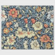 Seamless William Morris-style textile pattern featuring orange, cream, and yellow flowers with blue-gray acanthus leaves against a dark navy background.
