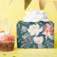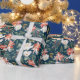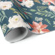 Vestir suas caixas de presentes de Natal com nosso papel de embrulho Floral de inverno na moda. O papel de embrulho de férias personalizado apresenta um padrão de flores de poinsettia de cor d'água, rosas de marfim, bagas ocas e folhagem de inverno verde contra fundo de marinho.