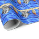 Cinza Irish Wolfhound sob um cobertor azul na cama