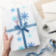 Fundo azul-claro com um padrão repetitivo de flocos de neve que dá um design festivo e inverno.