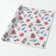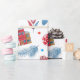O nosso belo Livro Vermelho, Branco e Azul da Terra Maravilha de inverno apresenta a ilustração aquosa de uma paisagem maravilhosa de inverno com cabanas rústicas, um caminhão vermelho, estrelas vermelhas e azuis, lipops de menta doce cercados em folhas botânicas de inverno e galhos em tons de azul, vermelho e ouro.