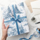 Wrap your gifts in timeless elegance with this blue and white woodland toile Christmas pattern. Featuring delicate illustrations of snowy forests, rustic cabin houses, elk deer, pine trees, and winter foliage, this classic design brings a serene, storybook charm to your holiday season. The crisp blue and white palette adds a refined touch to traditional Christmas gifting, perfect for those who love nature-inspired holiday style.