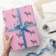 Elegant pink wrapping paper featuring a playful pattern of adorable Chihuahua illustrations, arranged in a repeating design.