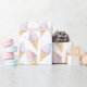 Wrapping Paper para aniversário com um sorvete doce e delicioso, desenhado em cores pastel suaves no estilo de aquarela.