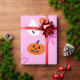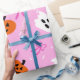 A cute hand drawn illustration of festive blend of ghosts and pumpkins on a vibrant pink background, evoking a playful Halloween spirit.