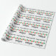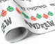 O vermelho e o verde coloriram o papel de envolvimento das luzes do Feliz Natal para mulheres e miúdos dos homens. Design brincalhão do feriado com as bolas de suspensão coloridas da ampola e estações do costume que cumprimentam a mensagem. Personalizable com nome do adulto ou da criança. Giftwrap do divertimento com as decorações alegres do Xmas. Cor branca ou feita sob encomenda do fundo. Letras engraçadas da tipografia.