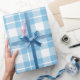 Papel De Presente Xadrez Azul Claro e Branco|Padrão Grande|