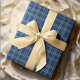 Papel De Presente Xadrez Azul Elegante com os Acentos de Prata Natal