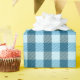 Embalagem de presente de xadrez azul-clara e clara, branca. Tão fofo para todas as ocasiões.