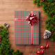 O papel de embrulho com um teste padrão clássico da xadrez do Natal no vermelho brilhante e o seafoam esverdeiam, com acentos do azul, do ouro amarelo, do preto, e os brancos.