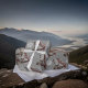 Uma rica cinza de aço cheia de flocos de neve e uma cadeira de Wingback de Natal com cobertor Xadrez, simples e elegante. Excelente para presentes de Natal clássicos.