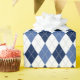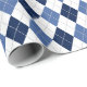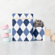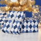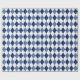 Este papel de empacotamento de presentes de padrão geométrico apresenta um padrão de xadrez azul-escuro, azul-claro e branco de argila com "costura" de cinza estendendo-se diagonalmente pelas formas de diamante - por katz_d_zynes