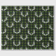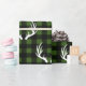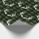 Papel de embrulho, de cor branca, com um padrão de chifres. O plano de fundo é xadrez de verificação de búfalos pretos, mas a cor verde pode ser alterada. Enrole este feriado no estilo arrojado de natureza russa! Fique entre esse monte de presentes!