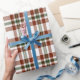 Papel De Presente Xadrez de Feriado Vermelho, Branco e Verde