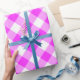 Papel De Presente Xadrez de Gingham Diagonal Branca e Rosa