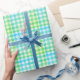 Papel De Presente Xadrez Gingham Verde limão Azul Verificação Simple