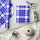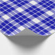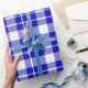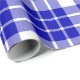 Um papel de embrulho projetado com um padrão real de xadrez azul e branco em tamanho grande. Personalize o fundo branco entre outras opções.