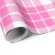 Papel de embalagem concebido com uma xadrez cor-de-rosa e branca, de grande dimensão. Personalize o fundo branco entre outras opções.