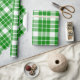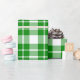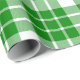 Papel de embalagem concebido com um padrão de xadrez verde e branco em grande escala. Personalize o fundo branco entre outras opções.
