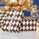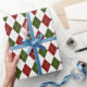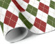 Este papel de empacotamento de presentes geométricos festivo apresenta um padrão de xadrez de argila vermelha, verde e branca com "costura" bege que se estende diagonalmente através das formas de diamante - por katz_d_zynes
